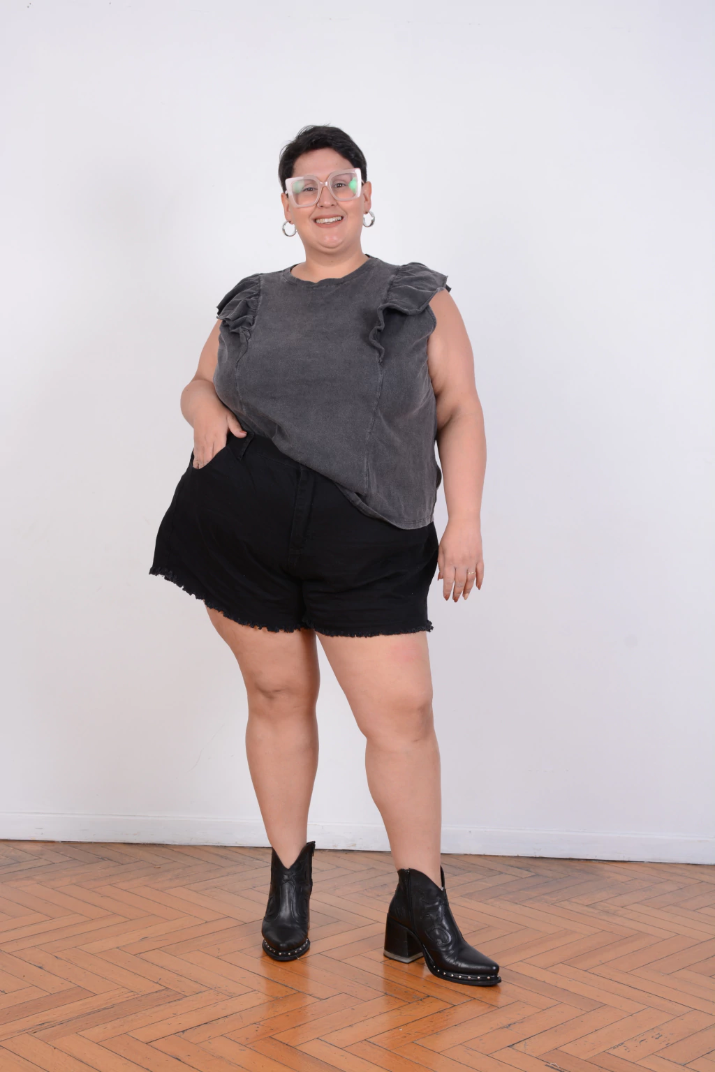 Una prenda con actitud rockera y alma bohemia. Hecha en algodón con lavado gastado tipo denim, nuestra remera de volados tiene ese aire vintage que se lleva con todo. El corte recto y los volados sobre los hombros suman movimiento y estructura, creando un equilibrio entre lo relajado y lo chic.